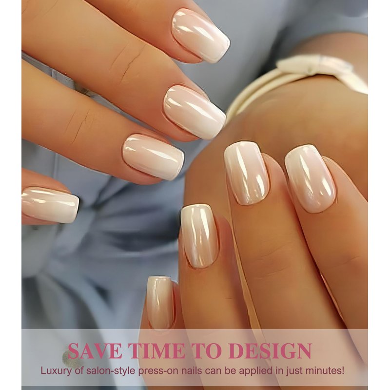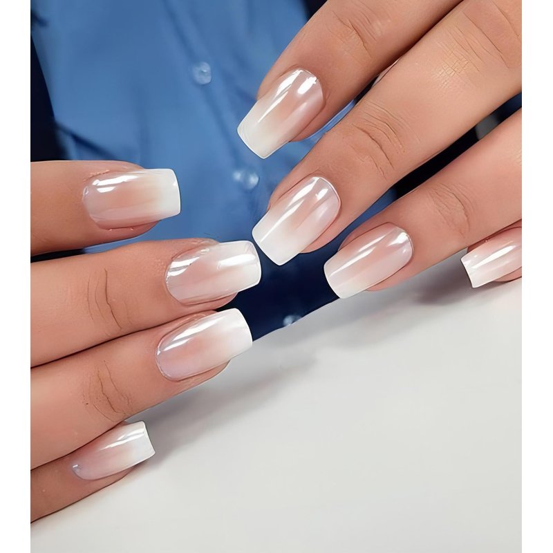 - Ombre Medium Square Nails - Feature a square shape and a natural ombre effect, semi-transparent nude on the finger and whiter towards the tips, with a glossy glazed finish. Mix and match to create your unique style that complements every outfit, from everyday chic to glamorous party looks