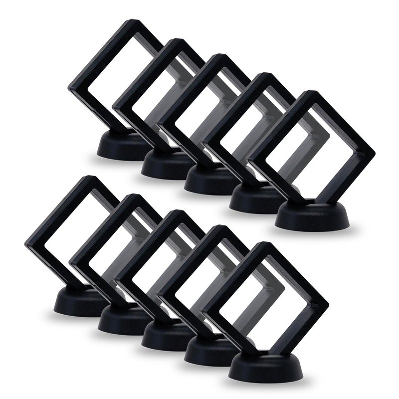 SQEYYGI 10Pcs Coin Holder Challenge Coin Display Stand, Black 3D Floating Display Case for AA Coin Medallions Jewelry Rock Gem Arrowhead Collecting and Display (2.75×2.75×0.8 inches)