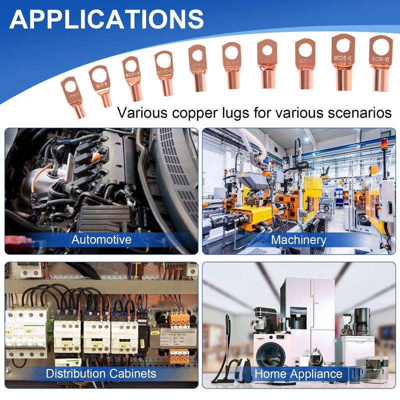 - 【Excellent Material & Quality】 100% pure copper,resists corrosion and maximum conductivity,The barrel is created from one piece of copper that eliminates the problem of the barrel opening. Your wire will never slip out of the connector.