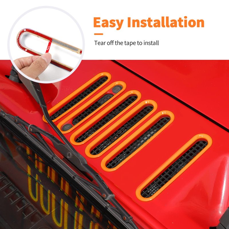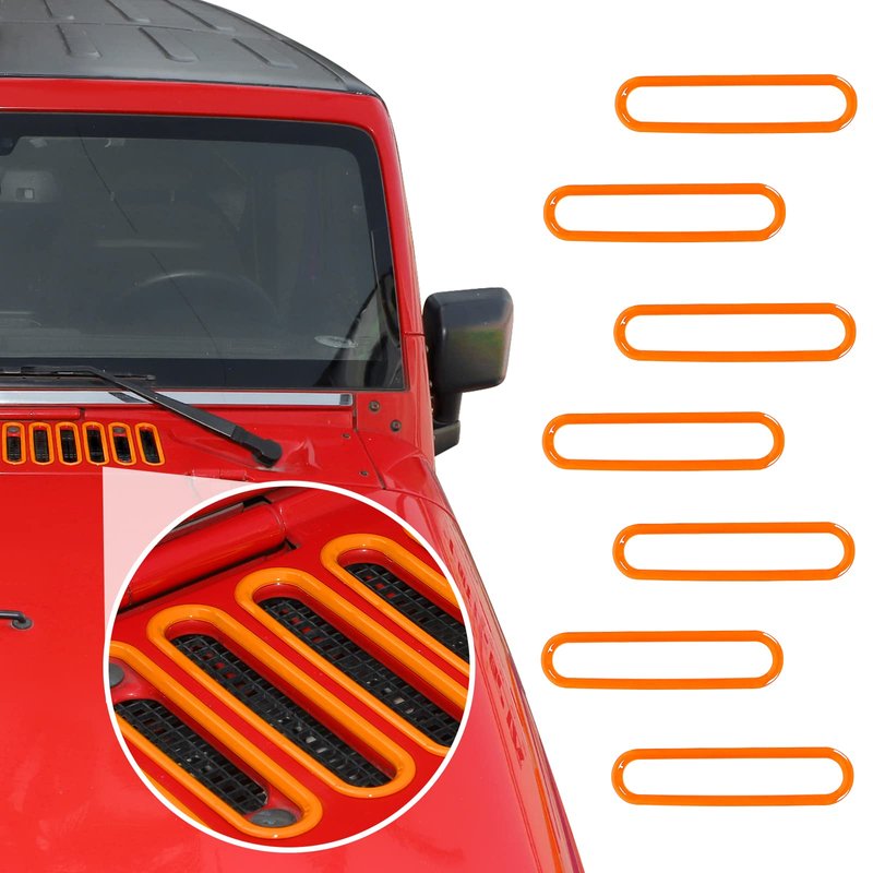 SQQP Hood Vent Cover Cowl Panel Vent Cover Trim, ABS Exterior Accessories for 2007-2018 Jeep Wrangler JK JKU 2/4-Door(Orange)