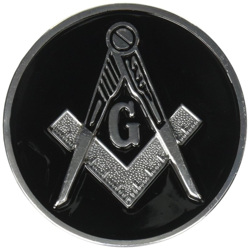 Square & Compass Round Masonic Auto Emblem - [Black & Silver][3'' Diameter]