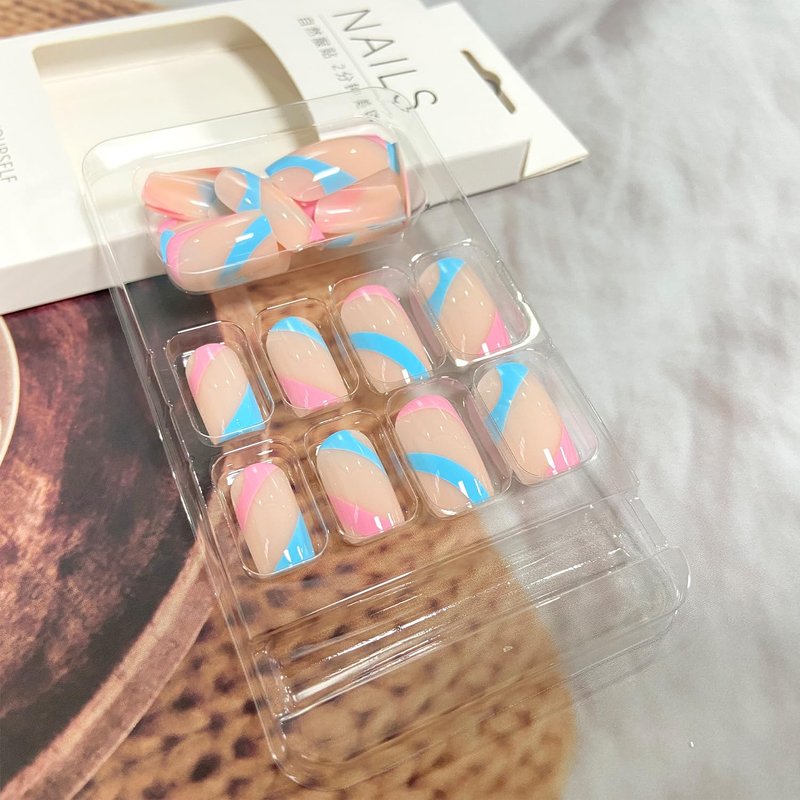 - 【Has Many Uses】Blue pink stripe false nails , medium coffin shape. Perfect for nails salon, DIY home nails art,used on wedding ,prom party ,dating.It is perfect gift for girlfriends, wives, women and girls.