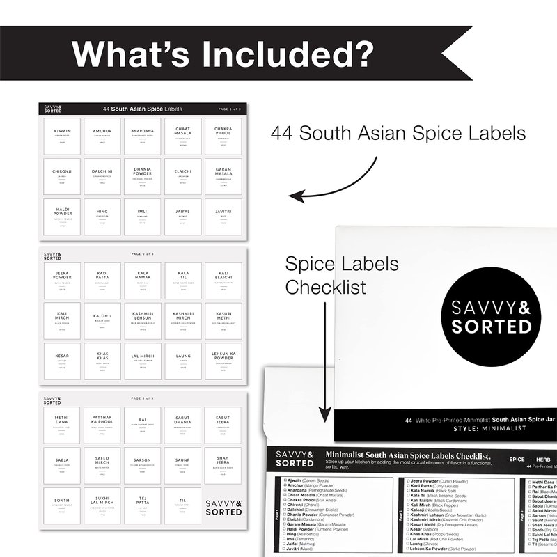- SOUTH ASIAN INDIAN SPICES LABEL - 44 Square Preprinted Labels of common Indian Spices including Checklist