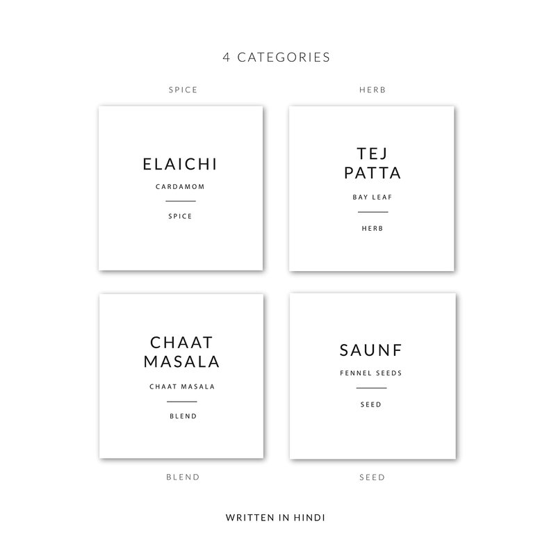 - INDIAN & ENGLISH SPICE NAMES - Put spice jars with label on display making kitchen labels organization fun.