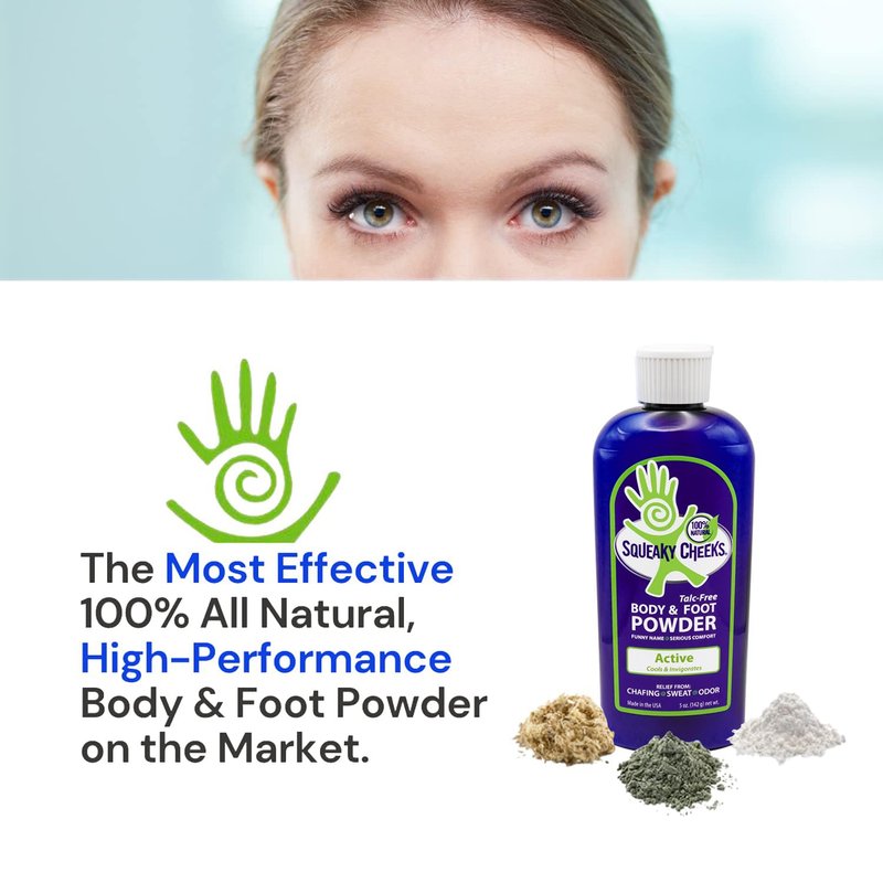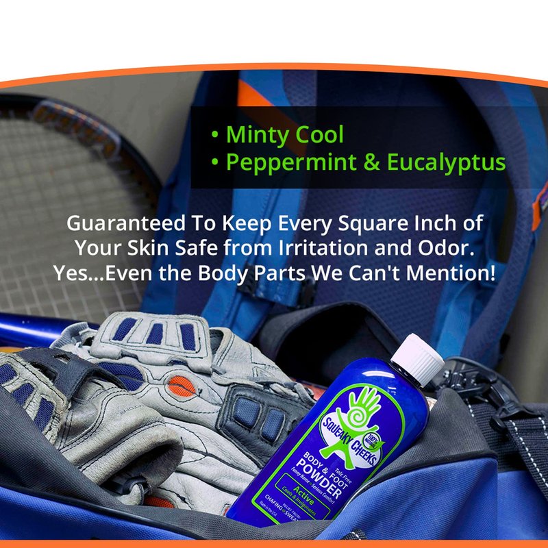Squeaky Cheeks Cooling Body and Foot Powder (5oz) | Organic Talc-Free and All Natural Powder | Active Formula | Minty Fresh Scent With Essential Oils | Effective Relief From Chafing Sweat and Odor