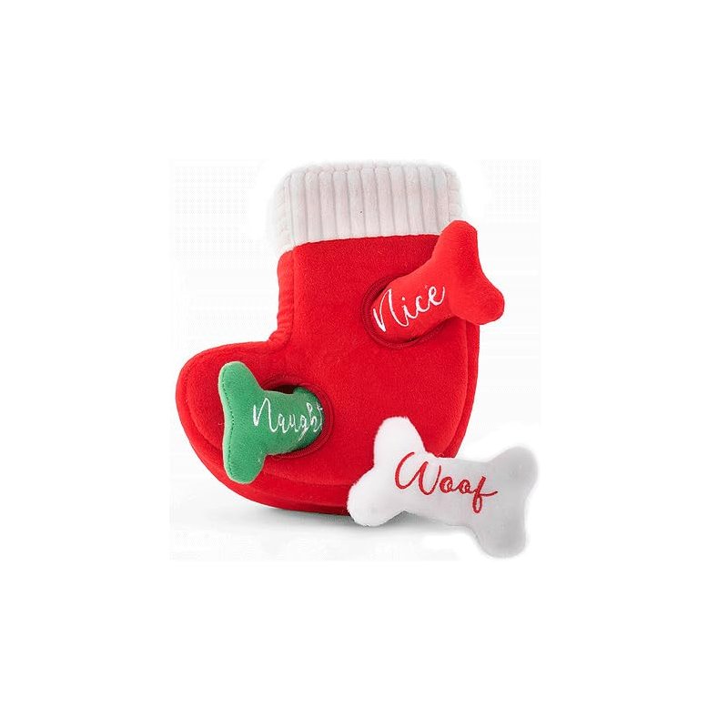 Squeaky Plush Dog Toy Holiday Burrow Naughty or Nice Stocking