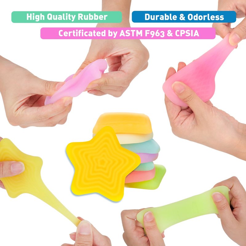 - Textured Sensory Toys for Special Needs: These soft silicone squishy sensory fidget toys can be stretched, pulled, and squeezed, It is greatly suitable for reducing stress and anxiety, helping to develop focus and concentration, especially for those with ADD/OCD, autism, or high anxiety levels.Perfect calming-down sensory learning tools for your baby, toddlers, and kids.