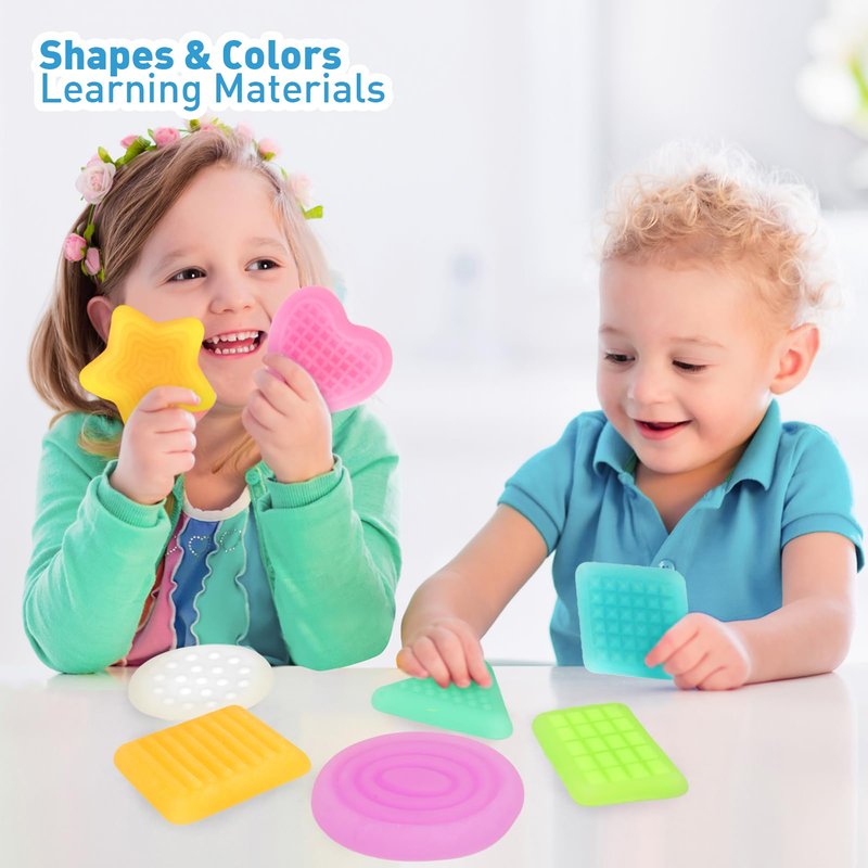 - Squishy Fidget Sensory Toys: 2023 Newest LESONG Sensory! Calming down stress sensory toy includes triangle, rectangle, square, circle, rhombus, oval, heart, and star with 8 different textures and popular colors to provide your child with a premium visual and tactile sensory experience! Perfect for boys and girls, these sensory items provide a satisfying sensation that helps reduce anxiety. Let the LESONG Sensory tools be your go-to choice for a delightful and soothing sensory experience.