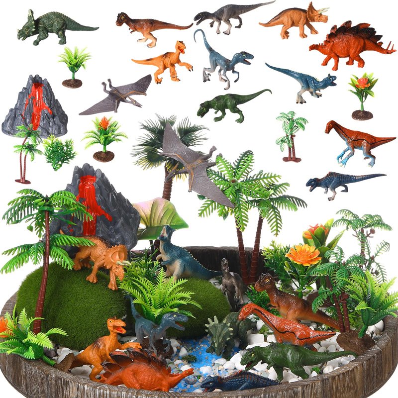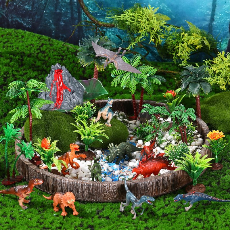 - Safety Material: the mini dinosaur toys, model tree and flowers are made of plastic, which is safe and reliable, can be applied repeatedly, and is convenient for you to DIY; Due to the material of artificial flowers, pollen may fall off