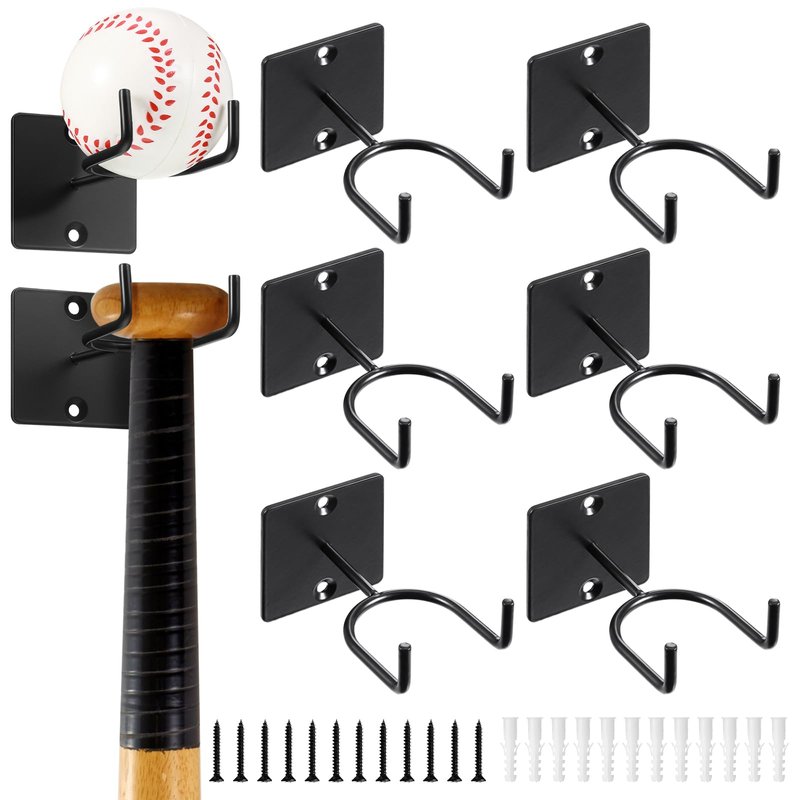 Sratte 6 Pcs Baseball Bat Holder Black Vertical Baseball Bat Wall Mount Display Stand Baseball Bat Wall Mount Storage Baseball Holder Baseball Bat Rack for Sport Memorabilia Ball Storage