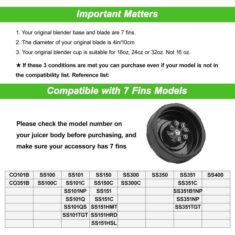 - Compatibility with: This 7 fins replacement blade is suitable for Ninja Foodi Power Blender CO101B, CO351B, SS100, SS100C, SS101, SS101C, SS101NP, SS101Q, SS101QS, SS101TGT, SS150, SS151, SS150C, SS151C, SS151HMT, SS151HRD, SS151HSL, SS300, SS300C, SS350, SS351, SS351B1NP, SS351C, SS351NP, SS351TGT, CO401B, SS400, SS400C, SS401, SS401C. Please check your blender model#