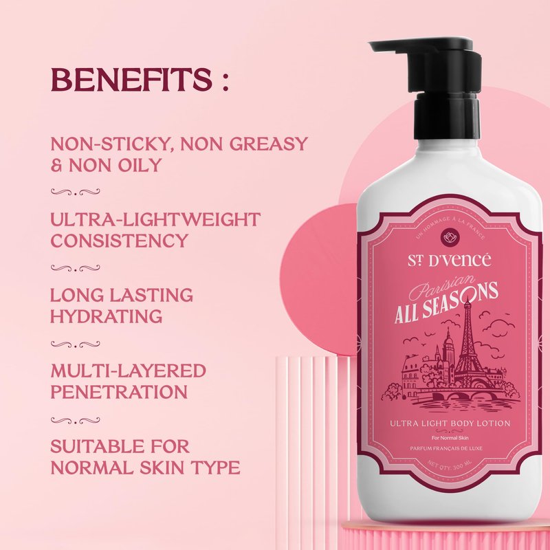 ST. D'VENCÉ Moisturiser is an ultra-lightweight lotion with super quick absorption technology, which intensely re-hydrates the lost moisture in your skin instantly and keeps it fresh, glowing and silky smooth. Its plush formula is enriched with American Aloe Vera, Almonds, Jojoba oil and Vitamin E components which with its London's classic fragrance, excellently spreads on your skin without leaving your skin greasy and conditions your skin for a lovely, silky feel with "wear-and-go" convenience.