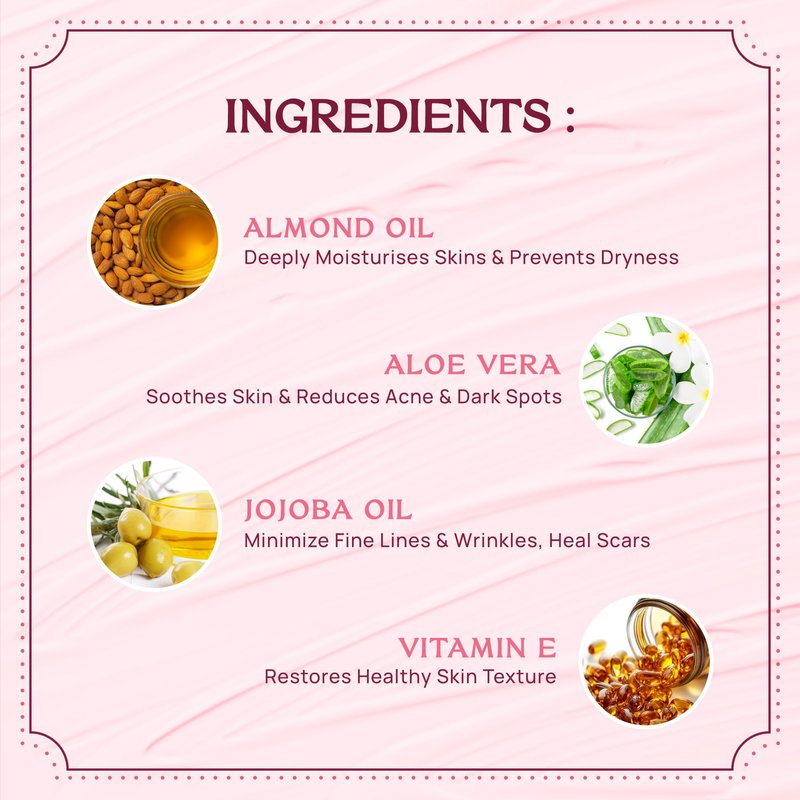 - INFUSED WITH: American Aloe Vera | Almond Oil | Jojoba Oil | Vitamin E