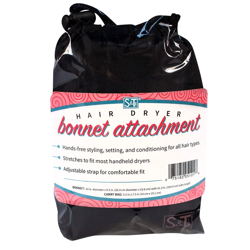 S&T INC. Bonnet Hood Hair Dryer Attachment for Drying, Styling, Curling, and Deep Conditioning, Adjustable, Storage Bag Included, Black