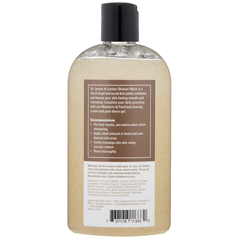 Our luxurious Mandarin & Patchouli Body Wash is made from essential oils and ultra fine jojoba beads that exfoliate, moisturize and renew your skin leaving it soft and smooth. Apply a small amount between your fingers and gently rub over skin areas – face, chest and body. Formulated and gentle enough to use every day and comes in large 0.5L size with easy to use flip-top cap. 16.9 oz / 0.5L *Cruelty-free Ingredients: Deionized Water, Laureth Sulfate, Acrylates Copolymer, Propylene Glycol, Cocamidopropyl Betaine, Methyl Paraben, Propyl Paraben, Polysorbate 20, Benophenone-4, Citric Acid, Sodium Chloride, Jojoba Beads (Jojoba Esters, Titanium Dioxide), Mandarin and Patchouli essential oils