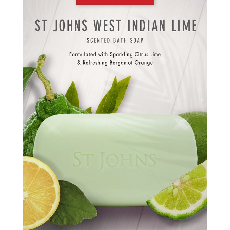 The refreshing, crisp, invigorating scent of fresh Caribbean limes in St. John`s West Indian Lime soap will instantly bring you a wonderful cool feeling. ALLr These 7oz bars are individually hand wrapped in St John`s Virgin Islands factory and are vegetable based.