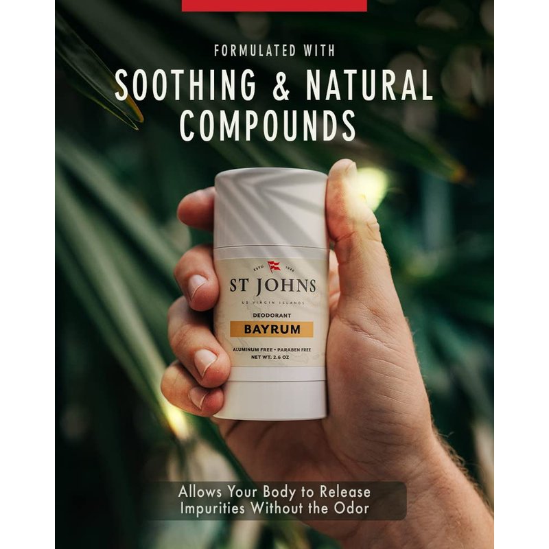 - LONG-LASTING & SOOTHING - This clear solid deodorant stick glides on smoothly, goes on clear, and dries fast while the soothing formula moisturizes underarms. Plus, no aluminum means St Johns Bay Rum Deodorant leaves behind NO pit stains!