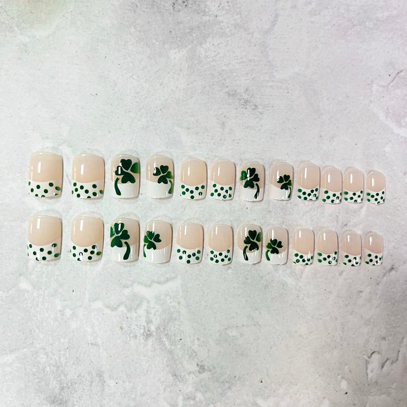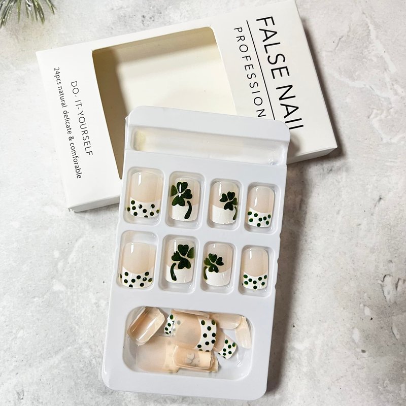 - ☘【Package Contains】24 Pcs St. Patrick's Day press on nails, 24 pieces of jelly glue, 1 piece of alcohol cotton, 1 mini nail file, 1 wooden stick.