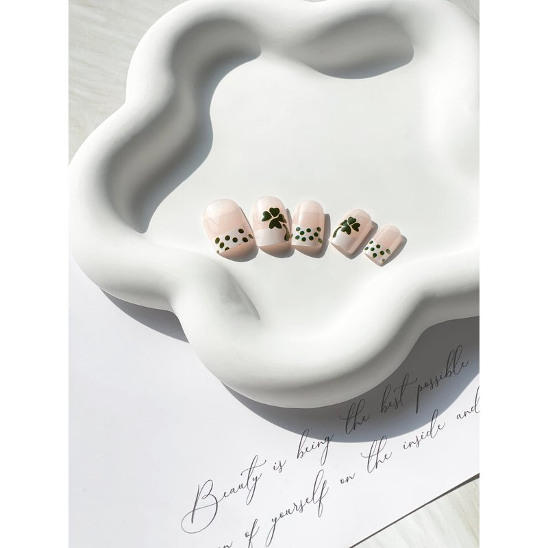 ☘️4. Trim according to the shape and length of the nail you want (you can paste fake nails with nail stickers or other accessories to create your favorite style.