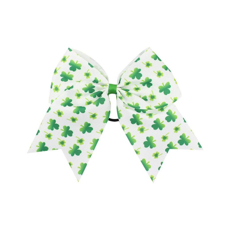 St.Patrick's Green Cheer Bow Pony Tail Holder Cheerleader Girls Teens Shamrock Green Clover Big Hair Bow Tie Hair Accessories
