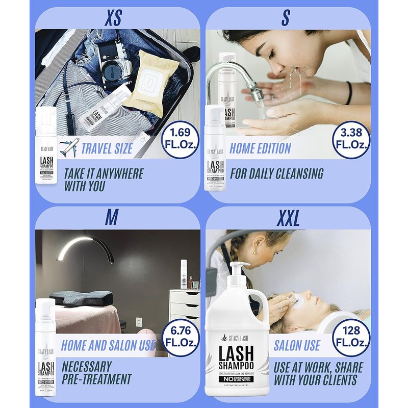 - Its foamy and gentle formula makes it a star of the show in your lash cleaning kit. Available in many sizes for all occasions, like travel size shampoo, as well as home and salon edition. Our lash extension cleanser is vegan and not tested on animals.