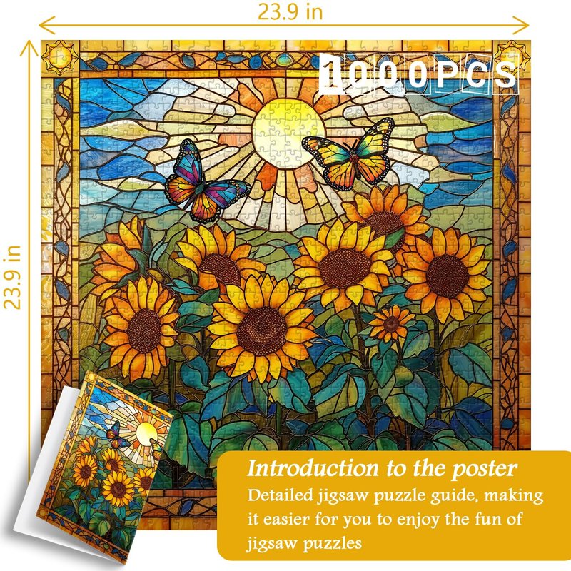 Stained Glass Puzzles for Adults 1000 Pieces and up, PICKFORU Sunflowers Puzzle as Home Decor, Butterfly Flower Puzzles as Home Decor