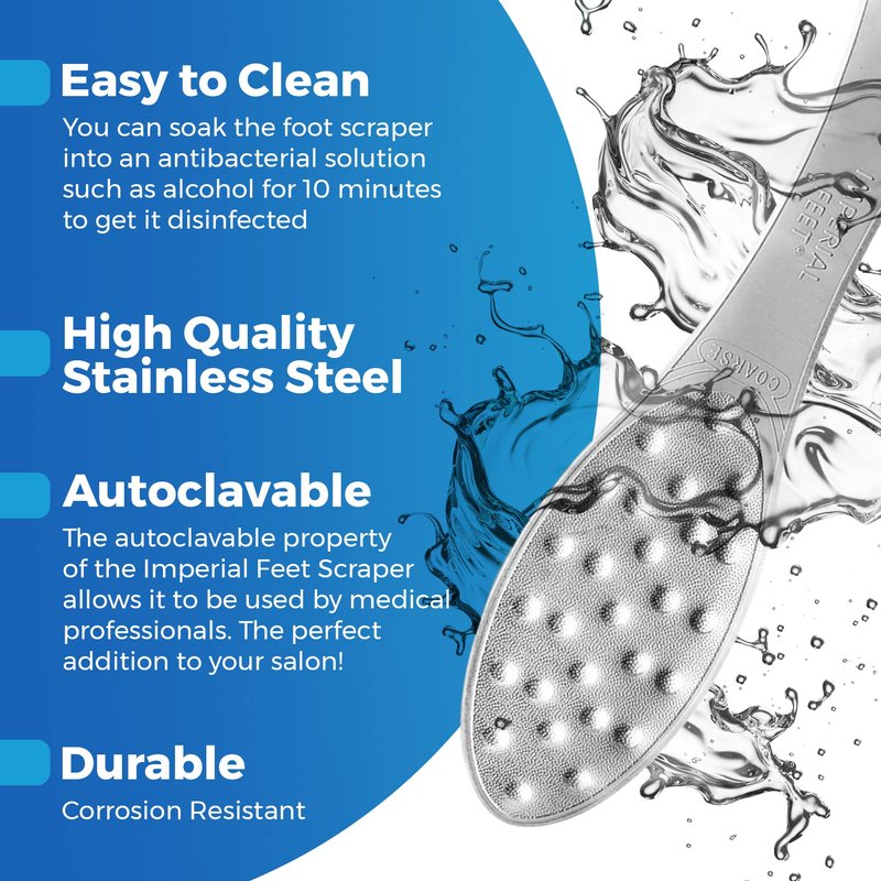 - Easy To Clean - When it comes to foot care tools, you’ll always want to keep them clean. This foot grater can be sterilized using soap and water, an alcohol soak, or by placing it in an autoclave.