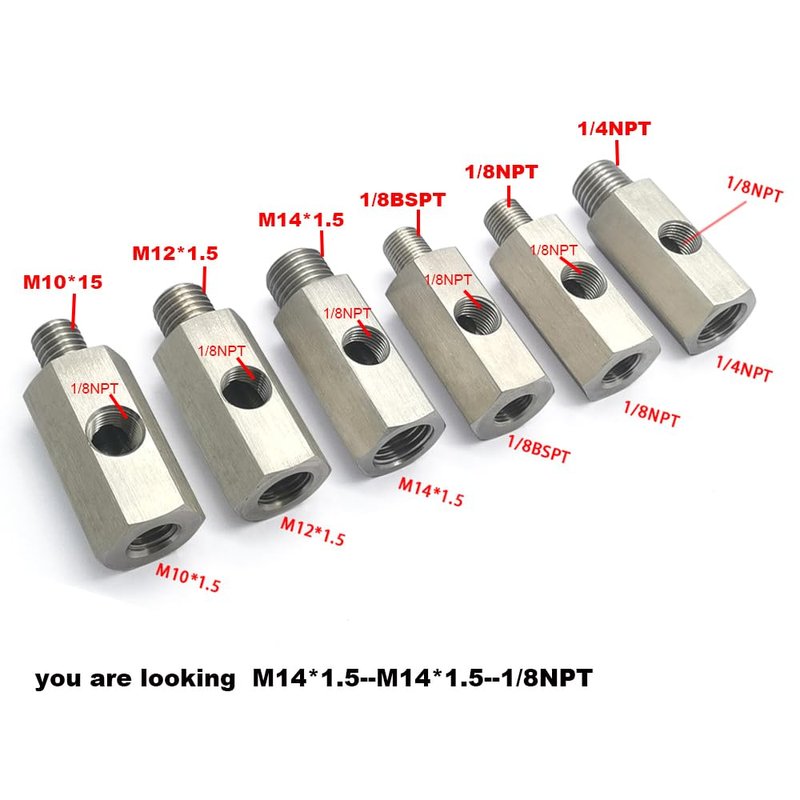 Stainless Steel M14x1.5 Female to M14x1.5 Male with 1/8 NPT Port Oil Pressure Sensor Adapter Tee Adding an Oil Pressure Gauge or Turbo Supply line