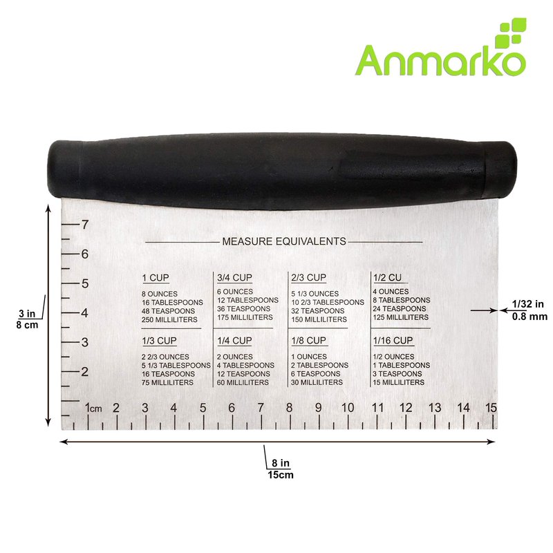 - Made from sturdy stainless steel - non-reactive, hygienic and durable. Heavy duty, scraper metal blade thickness is 1/32 inch.