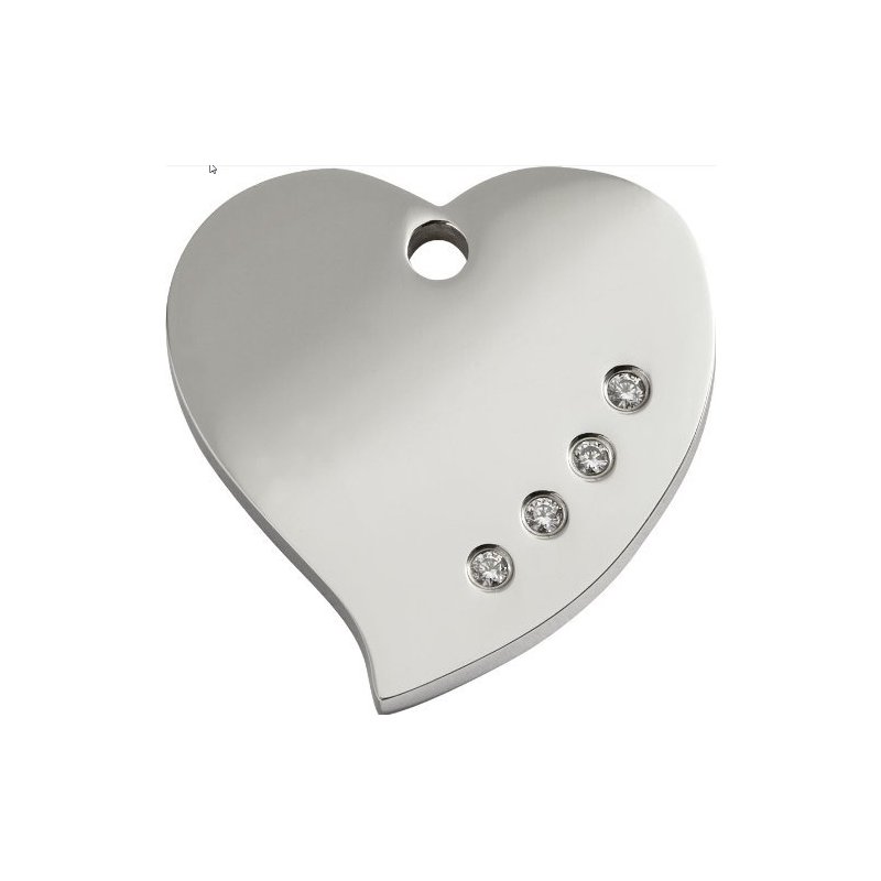 Stainless Steel with Swarovski Zirconia Heart Pet Id Tag - Medium