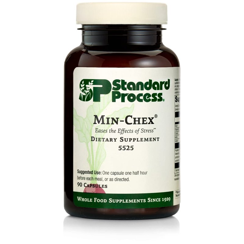 Standard Process Min-Chex - Whole Food Nervous System Supplement, Stress Relief with Soy Protein, Ascorbic Acid, Wheat Germ, Vitamin B6, Niacin, Iodine - 90 Capsules