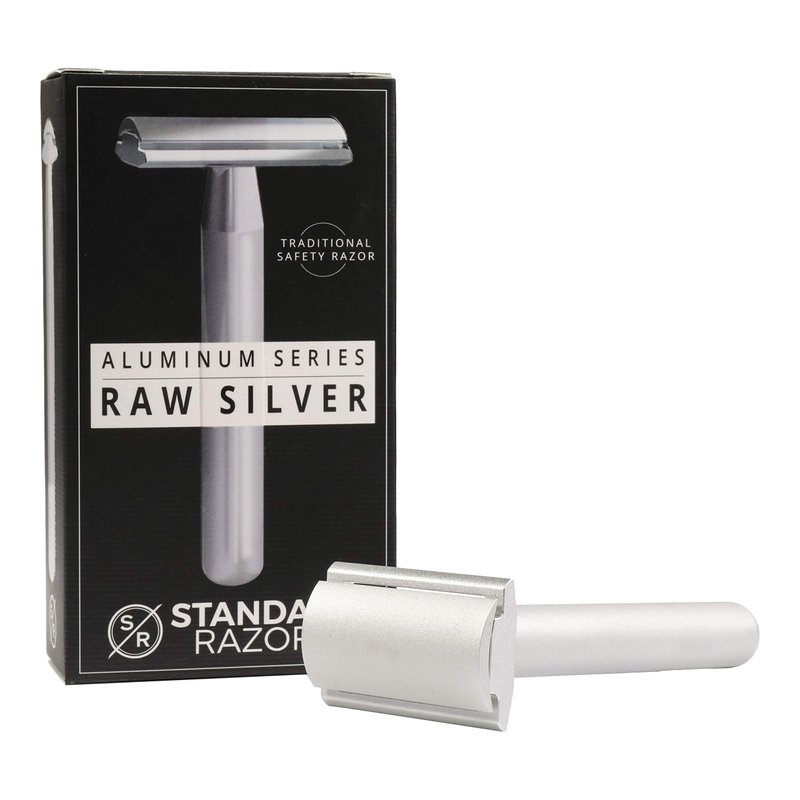 Standard Razors Aluminum Double Edge Safety Razor - Raw Silver | Luxury Razor for Men | Three Piece Double Edge Razor | Modern Design, Classic Shave