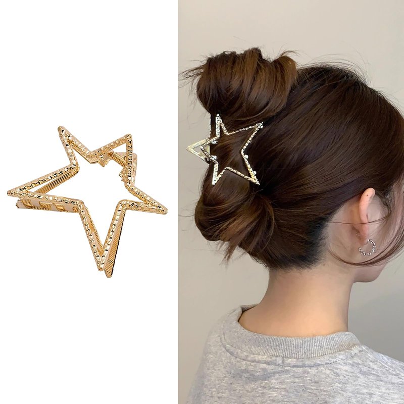 - Metal Matrials:The size of this pentagram claw clip is 2.76*2.36inches.Made of durable metal material.Not easy to break or fade, firmly hold your hair.You can use it to fix loose hair or create various hairstyles.