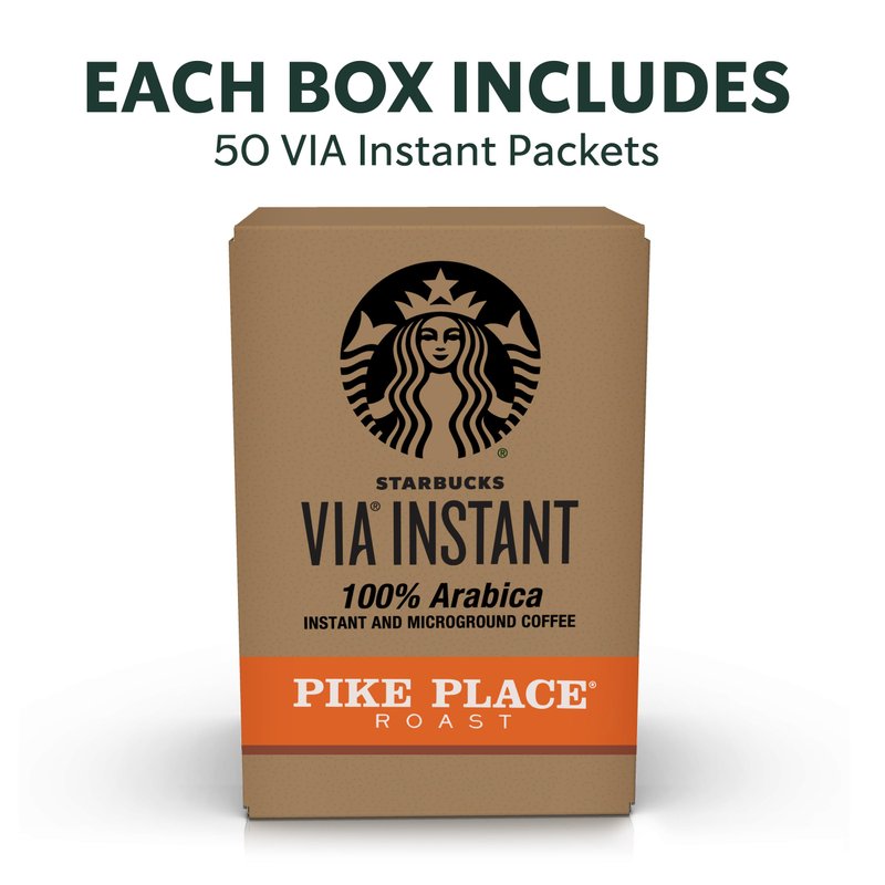 - Starbucks VIA INSTANT COFFEE PACKETS—Starbucks delivers exceptional coffee cup after cup with single serve instant coffee packets of Starbucks VIA Instant Pike Place Roast medium roast coffee—50-count box