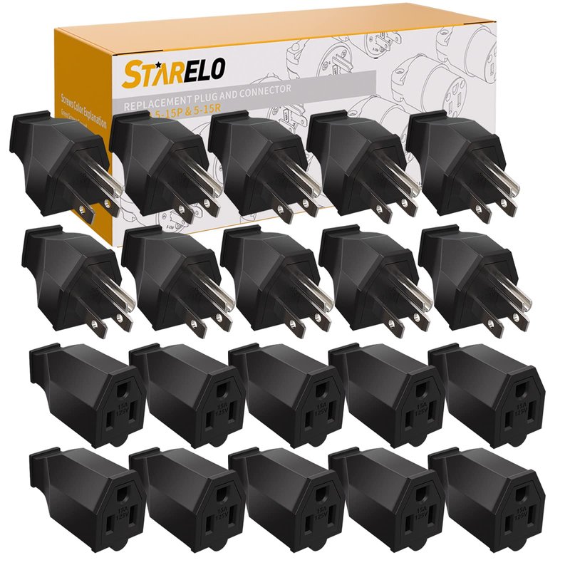 Type: STARELO Extension Cord Ends 125V 15A 2Pole 3Wire Male Plug and Female Connector Straight Blade Plug Replacement Electrical Extension Cord End(Male & Female 10 Set)