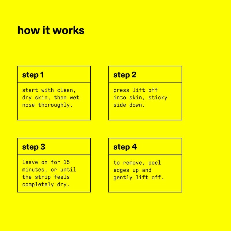 - EASY TO USE: Start with clean, dry skin and then wet nose thoroughly. Press Lift Off into skin, sticky side down. Leave on for 15 minutes or until strip feels dry. To remove, peel edges up and lift off.