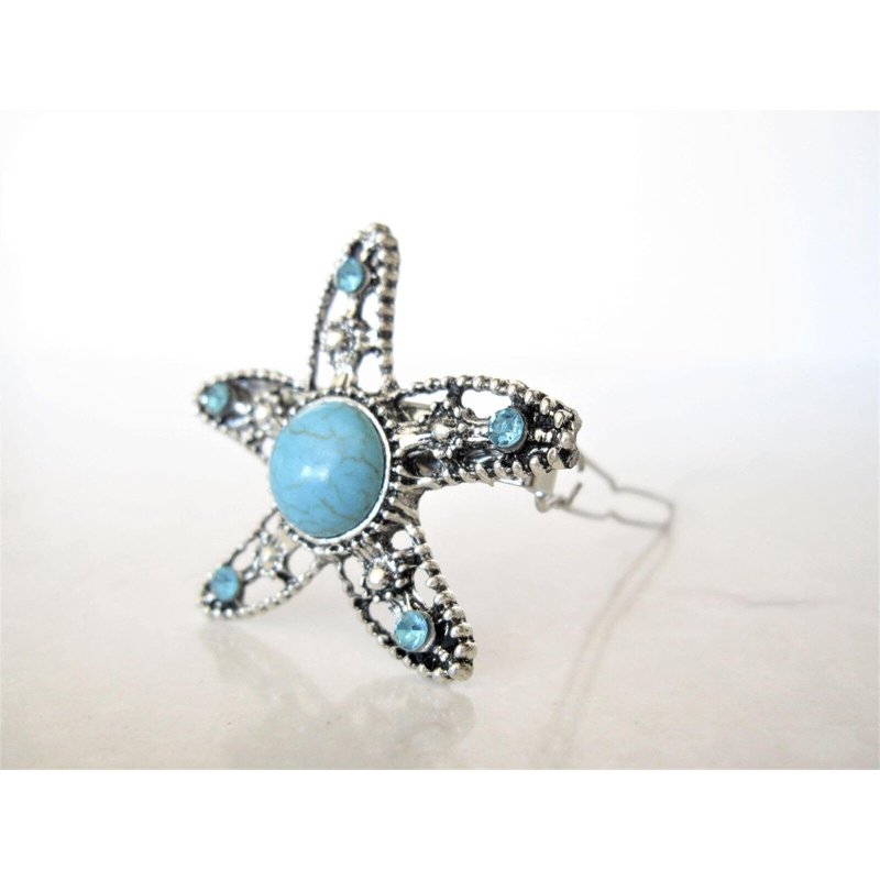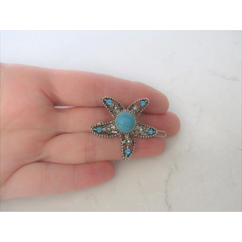 Starfish turquoise blue stone metal native hair clip barrette for thin fine