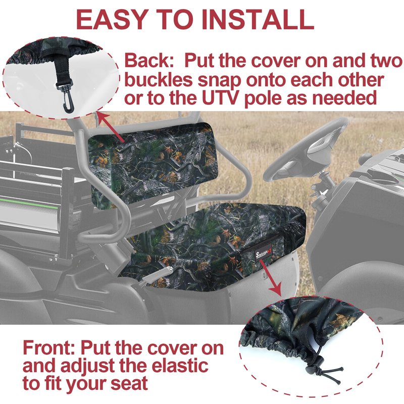 - ◈◈【ADJUSTABLE DESIGN】The Mule seat cushion covers, with an elastic band along the cover’s edge and a fastener on the back seat cover center, provide a quick and custom-like fit. The pocket in the front of the seat cover can store many items like phones, keys, tools, wallets, etc.