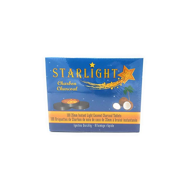 Starlight Coconut Instant Hookah Coals - 100 Charcoals Per Box, 10 Rolls of 10 Tablets Each Roll, 100 Quick Light Charcoal Briquettes, Easy Lighting, Size 35mm- Perfect for Your Hookah Set