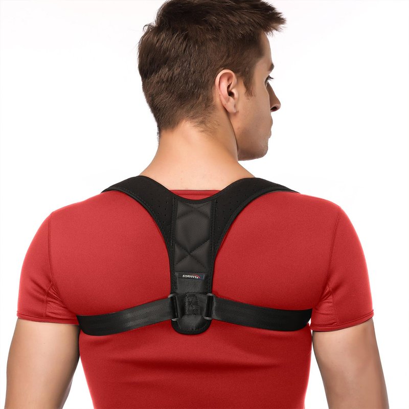 Stayfit Posture Corrector Unisex Back Brace, Adjustable Upper Back Pain Relief Support, Spine Neck Straightener Strap Black