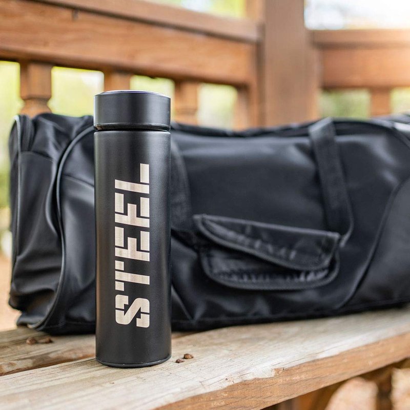 STEEL Stainless Steel Water Bottle BPA Free 14oz Insulated (Black)