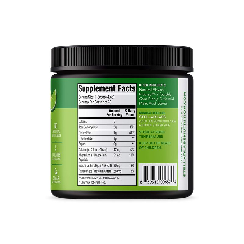 - ONLY THE BEST INGREDIENTS: Stellar Labs enhanced lemon lime electrolyte powder drink mix has No Sugar, No Gluten, No GMO's, No Fillers, No Artificial Sweeteners and Keto Friendly. Just simply the best electrolytes and natural flavors.
