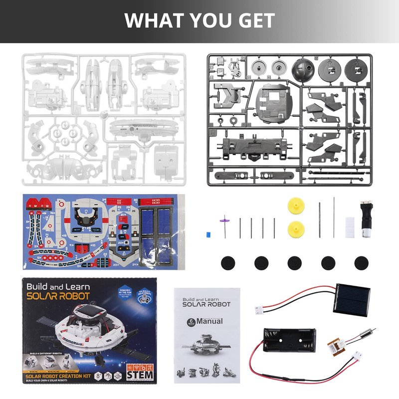 - ⚙️ Latest 6-in-1 Space Themed Solar Robot Kit ⚙️ : In order to meet the children's dreams of space, we have prepared this solar machine kit in six different assembly kit that can be played anywhere. Allowing children to learn the construction of robots and a variety of basic physics knowledge while DIY robots game which develop children's hands-on skills and imagination.