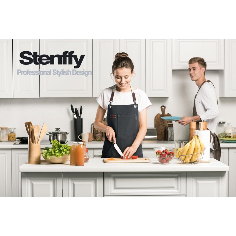 Stenffy Handmade Work Apron, Cotton Canvas, Multiple Pockets, Adjustable Cross Back Weight Apron, BBQ Cafe Kitchen Painting Carpenter Artist Apron, Aprons for Men Women, Sizes M to XXL, Black