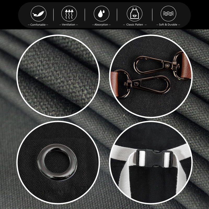 - PRACTICAL FUNCTION: The apron with 5 multifunctional pockets and 2 loop straps, suitable for cell phones, tools, pens, notebooks, BBQ clips, meat thermometers, and other tools you need, practical and convenient.