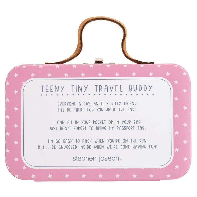 - Our Teeny Tiny Travel Buddies come with a suitcase they can pack away in for adventures to Paris or the Living Room. Wherever your little one goes, so will this adventure buddy.
