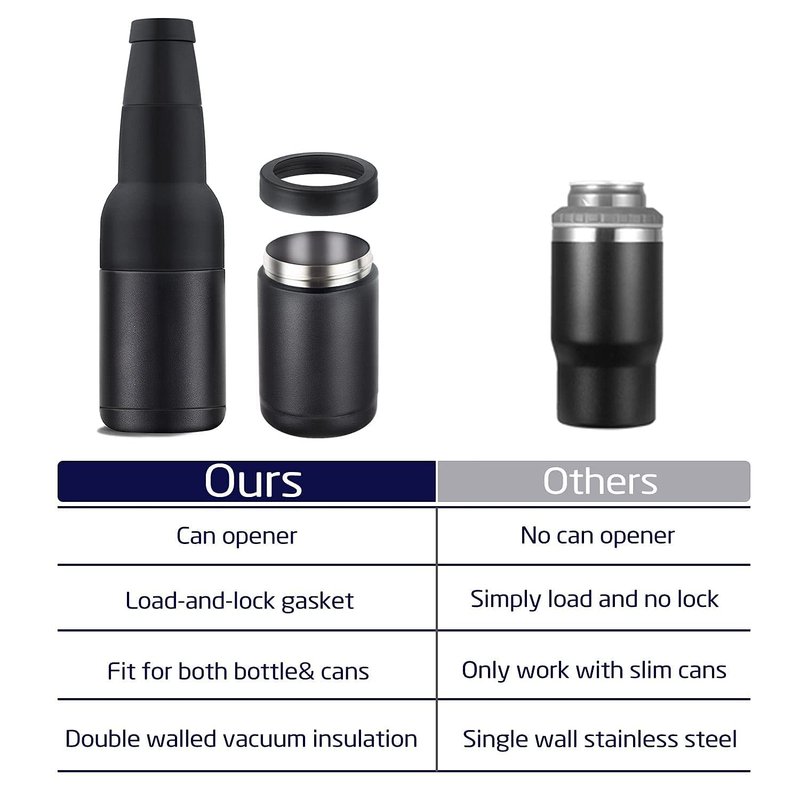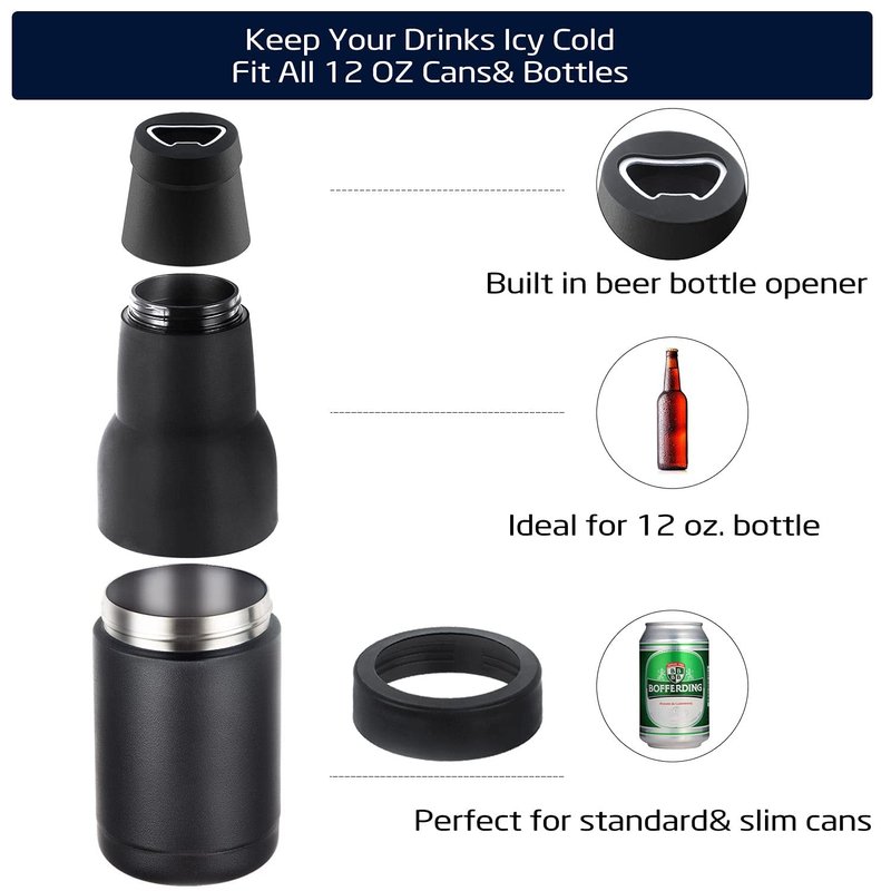 - 🍺【Fits all 12 oz cans& bottles】Stepstall bottle cooler works with all slim-style 12 oz beer, soda canned drinks, spiked seltzers and energy drinks. With built-in beer bottle opener, it makes your beer drinking more convenient and enjoyable.