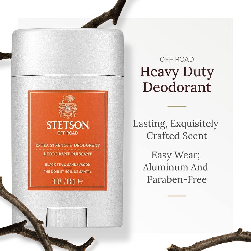 - Stetson's Men's Grooming Collection: Experience the harmonious blend of rugged and sophisticated with our new range, including our Extra Strength Deodorant three-set bundle
