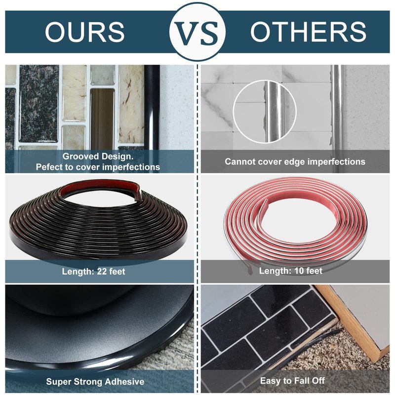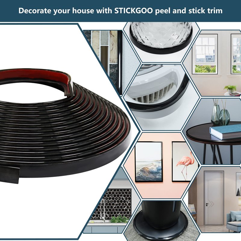 STICKGOO 22ft Peel and Stick Trim Molding, Premium Self-Adhesive Wall Trim for Tile Edges, Furniture Accent, and Kitchen Backsplash Decor in Black