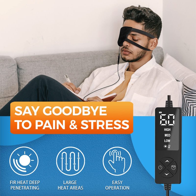 - CUSTOMIZED TEMPERATURE AND TIMER SETTINGS: The stye eye compress mask is equipped with Easy-to-Use LED Display hand Controller. There are three temp and five timer settings available, customized designs for your best fitting temperature and auto-off timer for warming or heat therapy. But NEVER SLEEP when wearing the mask even if you have set the auto-off timer.